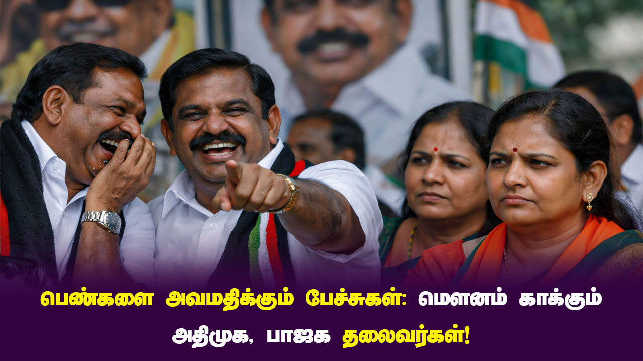 சொந்தக் கட்சியைச் சேர்ந்தவர்களே மேடைகளில் பெண்களை இழிவுபடுத்திப் பேசும்போதும், அதிமுகவின் பெண் நிர்வாகிகளோ அல்லது பாஜகவின் பெண் எம்.எல்.ஏ மற்றும் முக்கிய தலைவர்களோ இது குறித்து எவ்வித கண்டனமும் தெரிவிக்காமல் கண்டும் காணாதது போல் இருப்பது ஏன்? என்ற கேள்வி பரவலாக எழுப்பப்பட்டு வருகிறது. கட்சியின் தலைமையும் இதற்கு முற்றுப்புள்ளி வைக்காமல் இருப்பது விமர்சனங்களை மேலும் வலுவாக்கியுள்ளது.